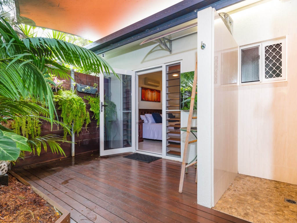 Offering 2 bedrooms, fully air conditioned throughout, ceiling fans, two bathrooms - one of which is located outside in a tropical bali style garden setting and a fully equipped kitchen. Spacious lounge and living areas leading to the outdoor entertaining area and inviting pool, making it the perfect place to laze away the afternoon with a great book and glass in hand. There is also a gazebo area complete with deck chairs and comfy outdoor bean bags. Just sit back, relax and enjoy your tropical surrounds.