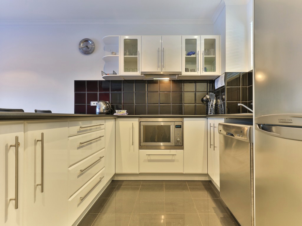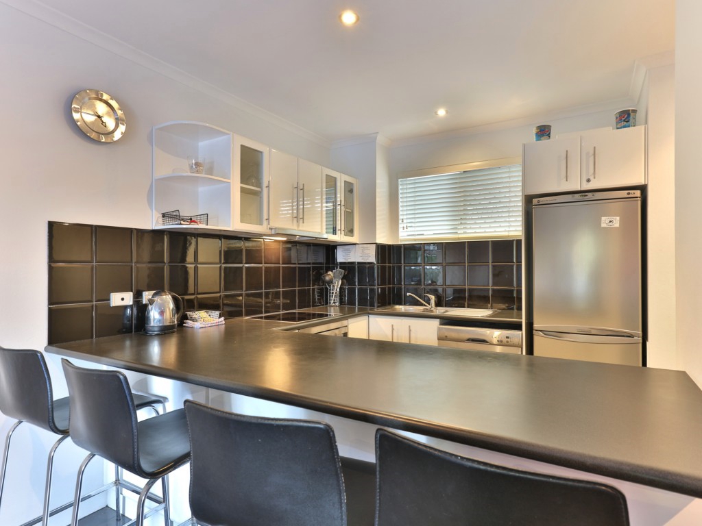 This very private apartment overlooking a tropical setting, great kitchen with lots of U-shaped benchtop space, European appliances and all cooking utensils and dinnerware.